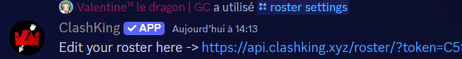 Use/roster settings. Once sent, the bot will send you a link to set up the roster on a webpage, which can't be done on Discord.