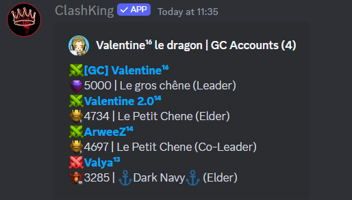 Vous verrez les préférences de guerre de chaque compte, dans quel clan ils appartiennent, quel rôle ils ont et combien de trophées ils possèdent actuellement.