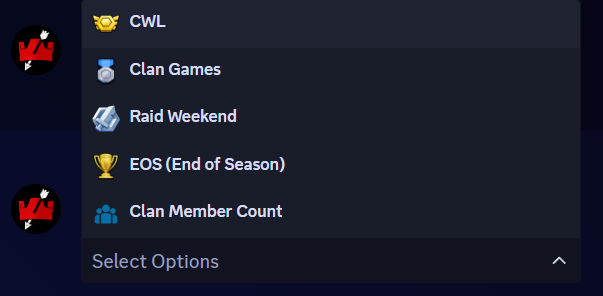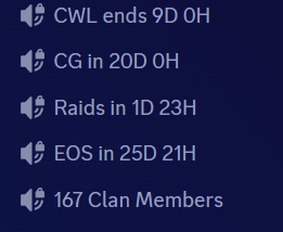 clan : si vous souhaitez définir des comptes à rebours spécifiques pour un clan (score de guerre et timer)