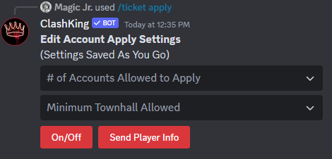 Une mise en garde concernant l'ensemble du processus de demande de ticket est qu'il nécessite que les comptes des personnes y soient liés. Le bot en informe les utilisateurs s'ils finissent par essayer de postuler sans compte, mais il appartient au serveur de mettre en place un système de liaison robuste en utilisant des éléments tels que des boutons de lien ou autres. Ce n'est cependant pas si grave de nos jours, car un nombre surprenant de personnes sont liées à Discord 😄