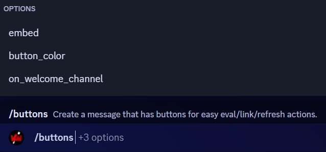 - embed : Choisissez le embeds.md auquel vous souhaitez ajouter des boutons. Si vous ne sélectionnez pas d'intégration, une intégration sera créée en fonction des boutons que vous avez choisis.