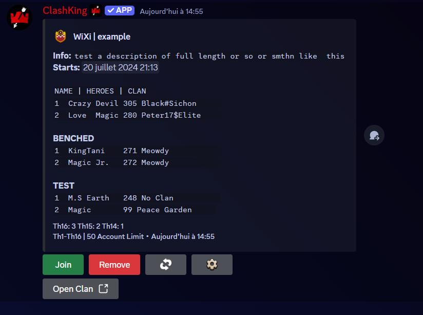 Dit is de handigste opdracht voor het voorbereiden van CWL en gebeurtenissen. Dit is een alles-in-één tool waarmee je tijd kunt winnen en spelers efficiënt kunt beheren voor oorlogsgebeurtenissen.